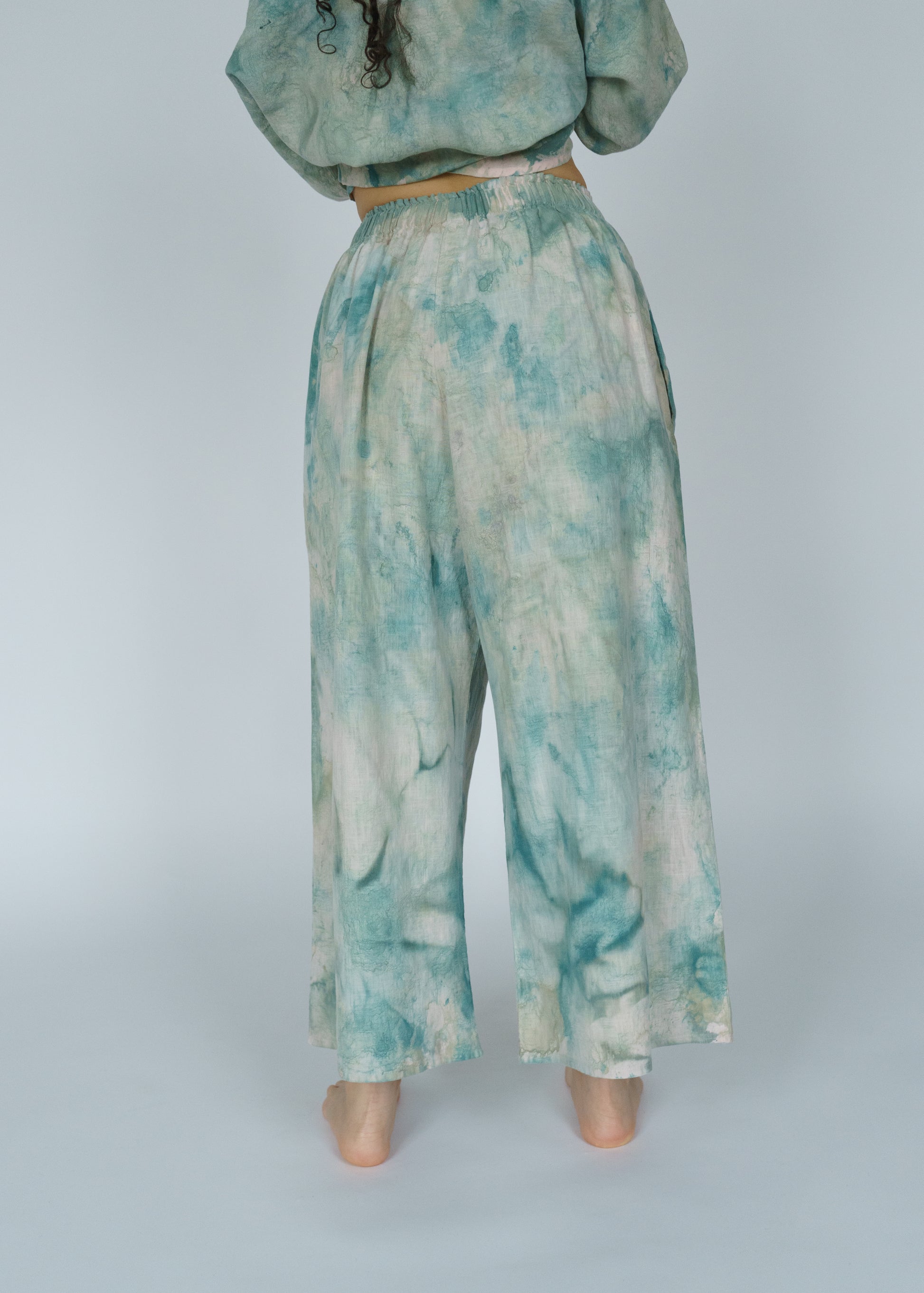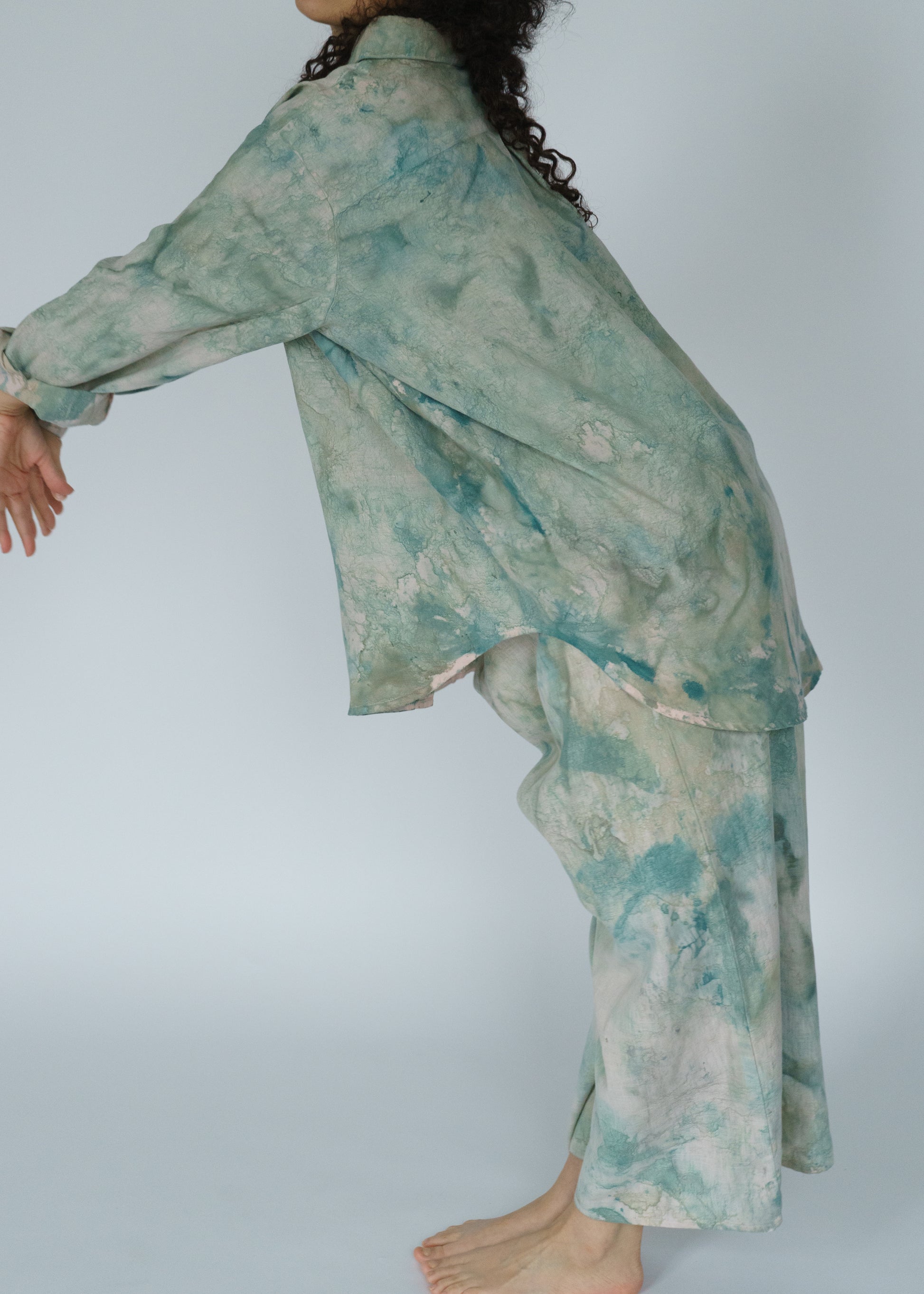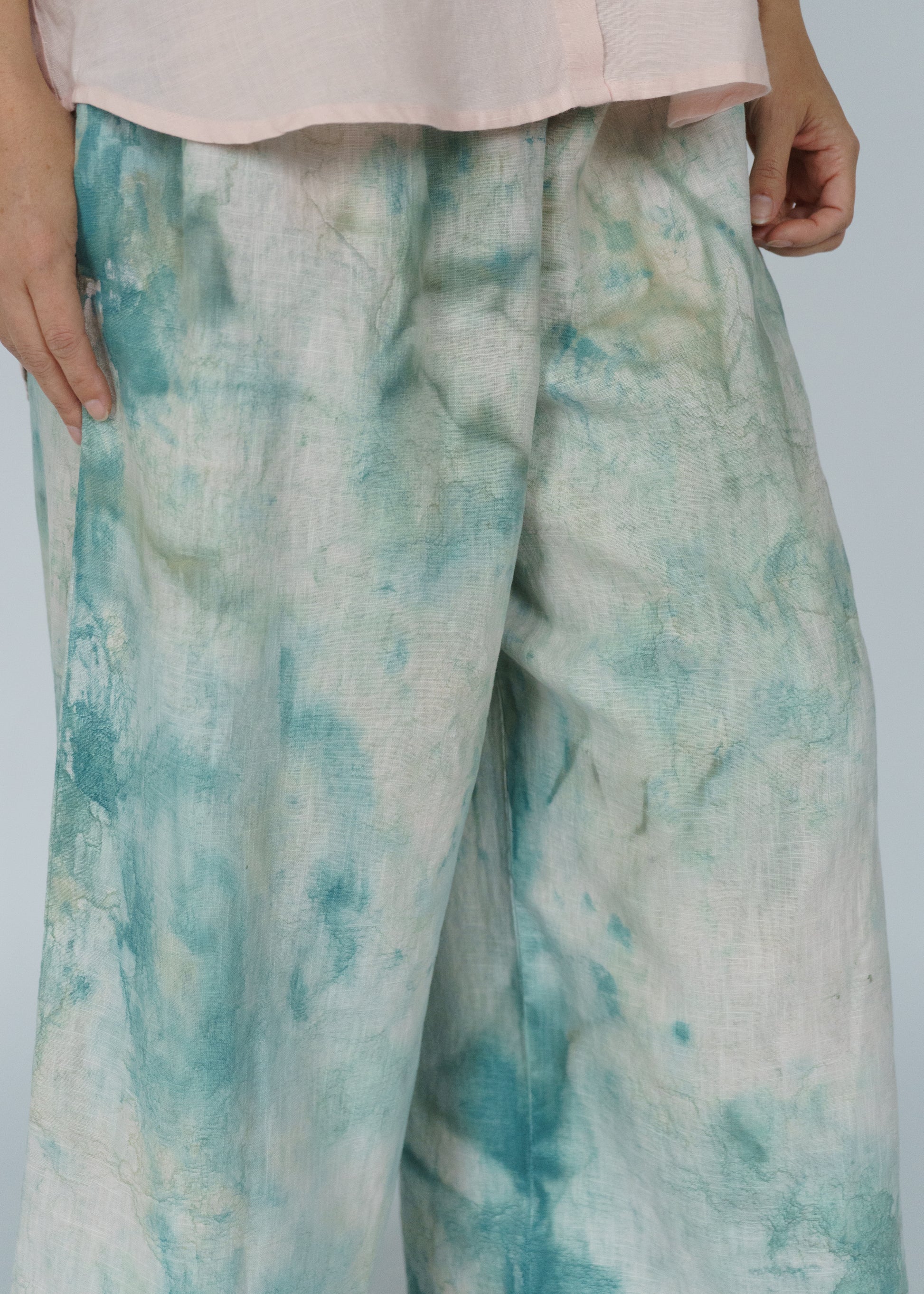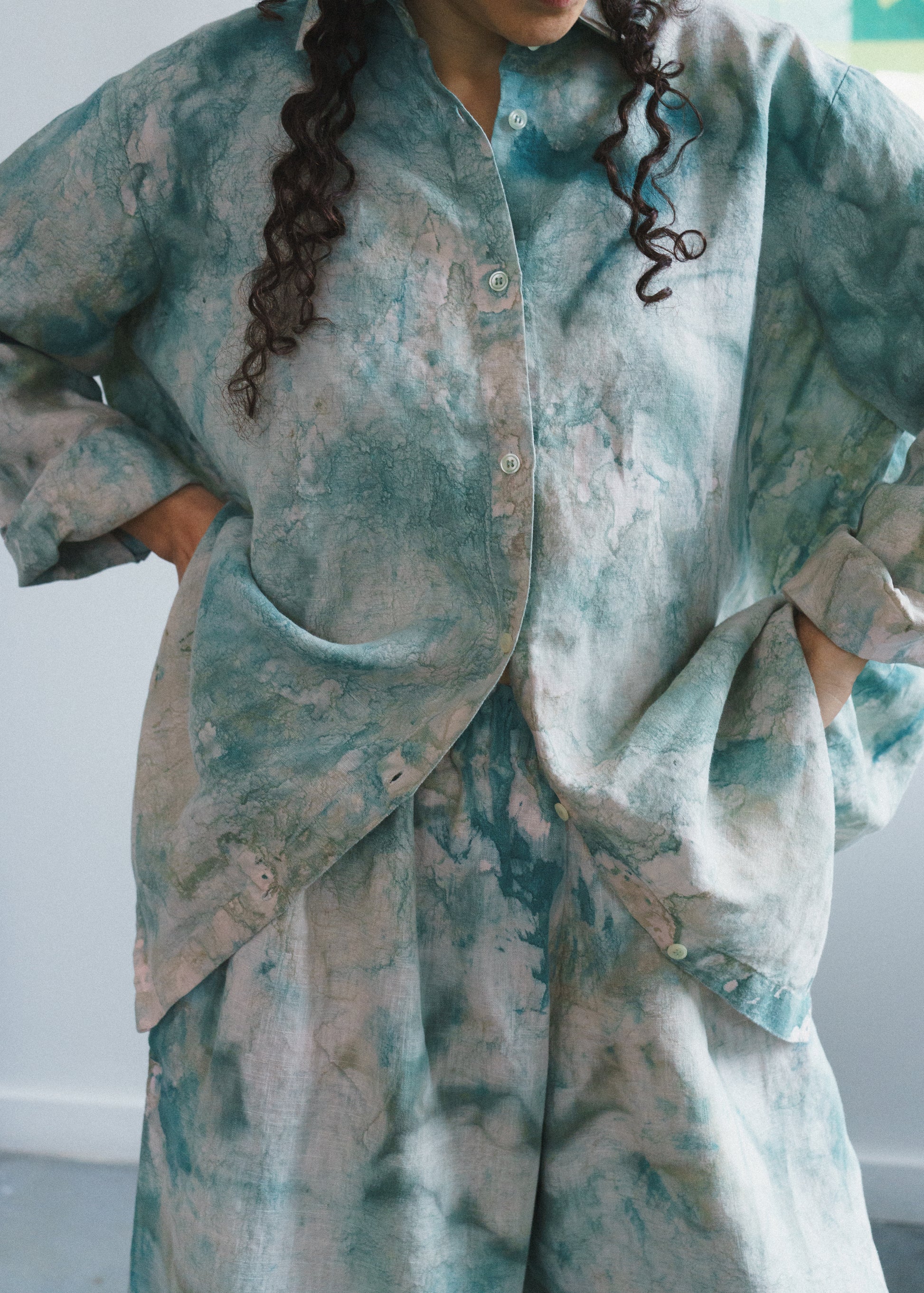 The Swayers in Thorn feel like walking through a sun-dappled forest — soft, fluid, and painted in shades of moss and magic. Each pair is hand-painted, so no two are exactly alike. You can see the brushwork, the motion, the human touch in every fold. They’re easy and elegant, roomy and real — the kind of pants that make “effortless” feel truly effortless. And paint on linen is as good as it gets. The pigment settles into the fabric more and more with each wash and wear. In a few years, these pants will be just as much as a headturner.
