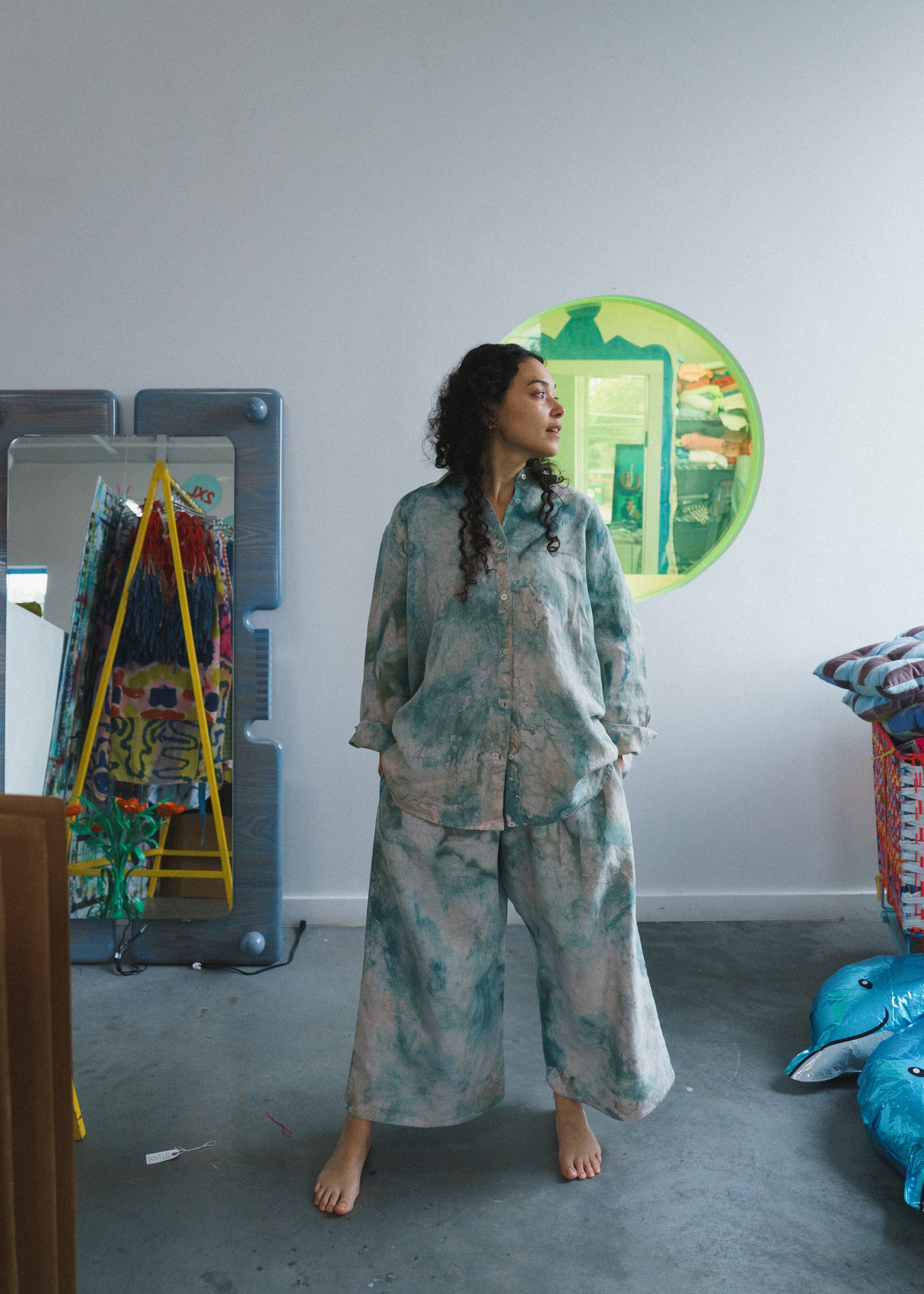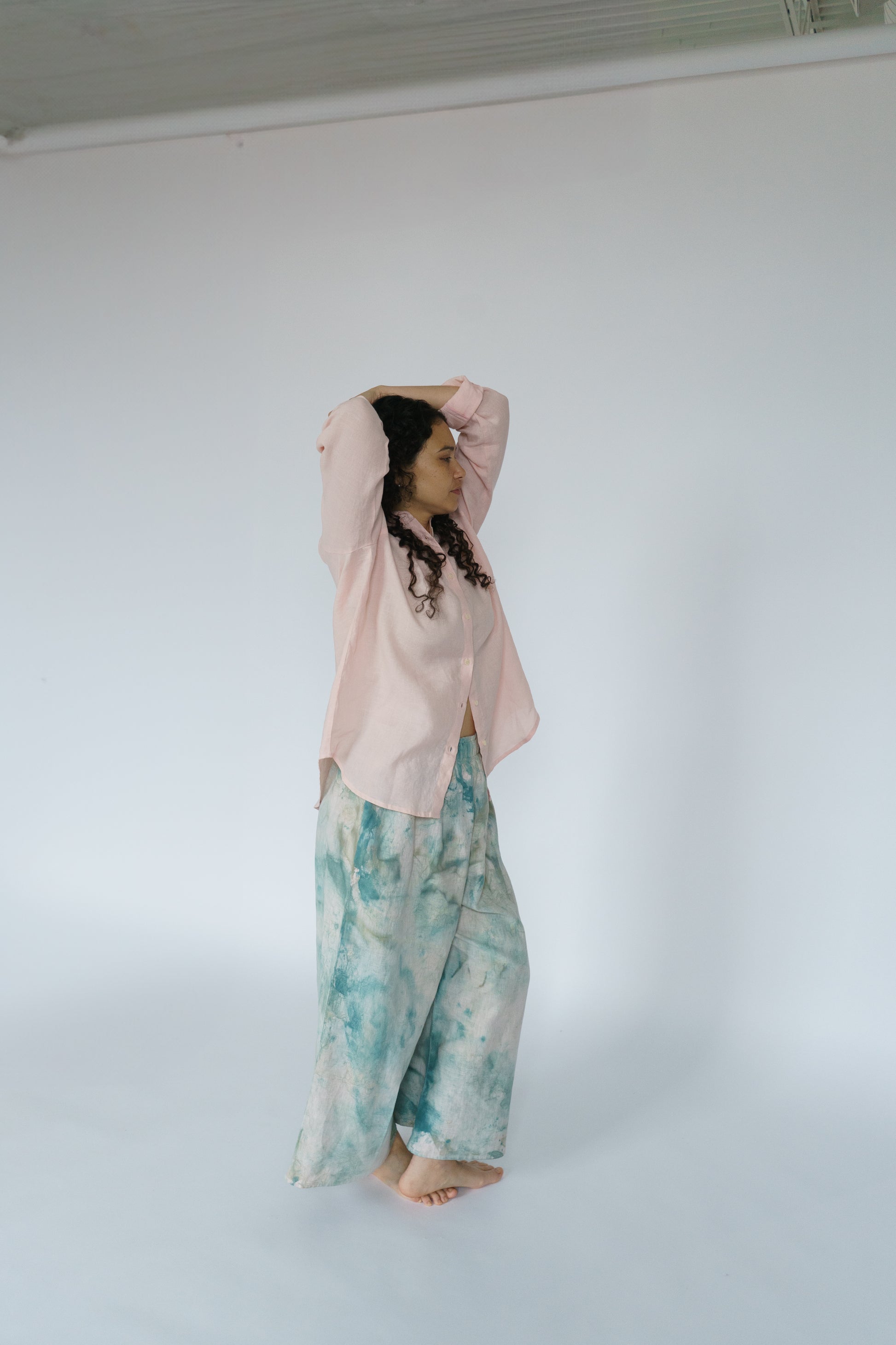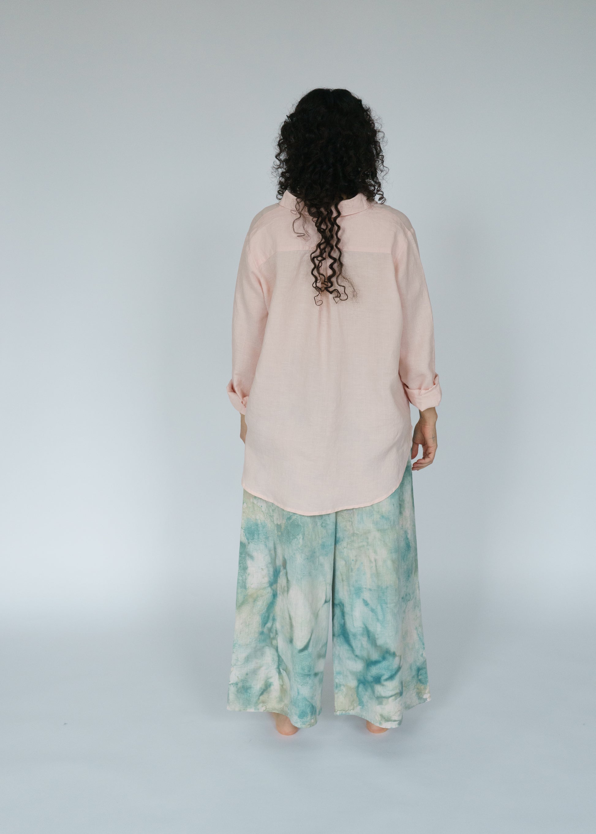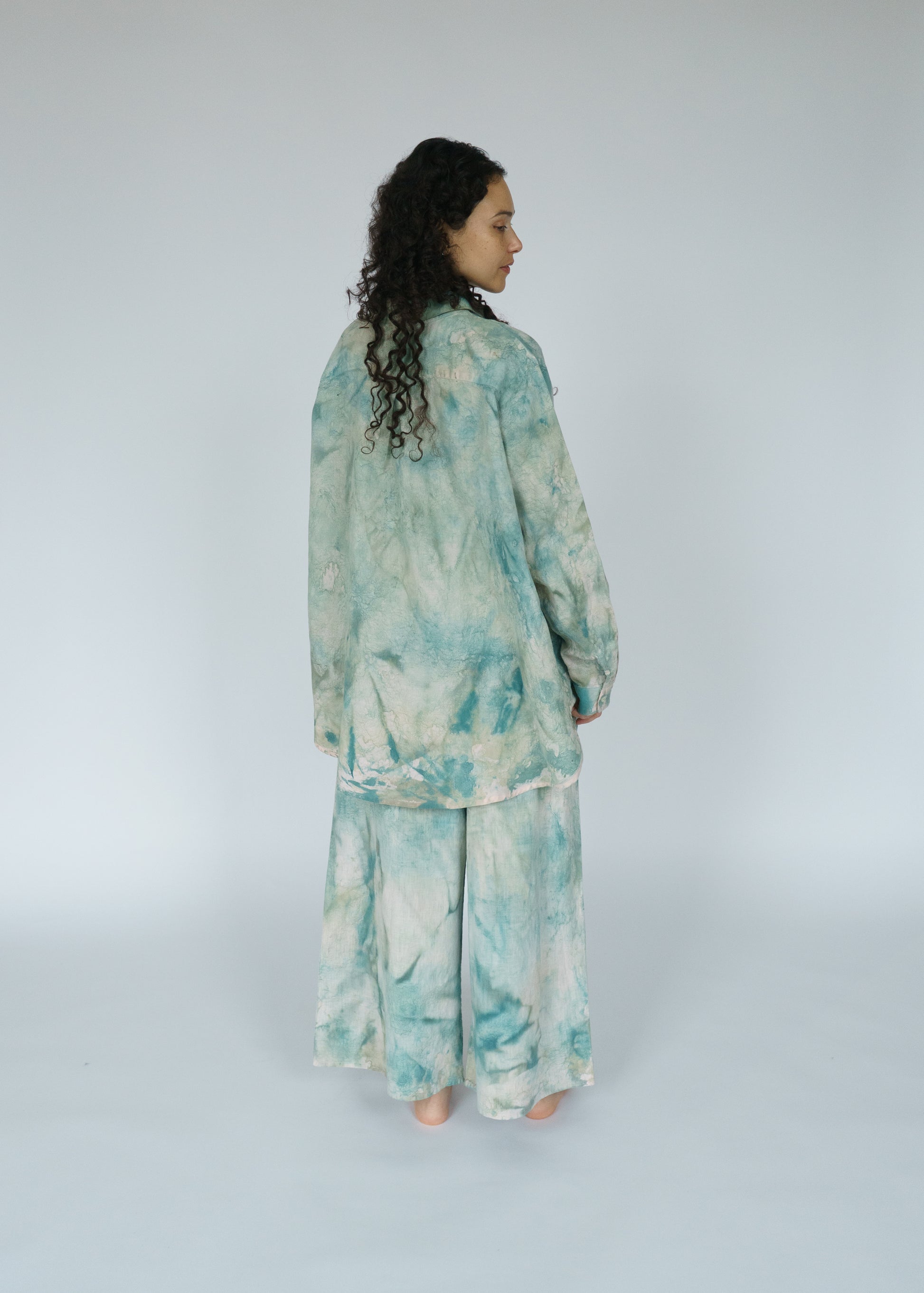 The Swayers in Thorn feel like walking through a sun-dappled forest — soft, fluid, and painted in shades of moss and magic. Each pair is hand-painted, so no two are exactly alike. You can see the brushwork, the motion, the human touch in every fold. They’re easy and elegant, roomy and real — the kind of pants that make “effortless” feel truly effortless. And paint on linen is as good as it gets. The pigment settles into the fabric more and more with each wash and wear. In a few years, these pants will be just as much as a headturner.