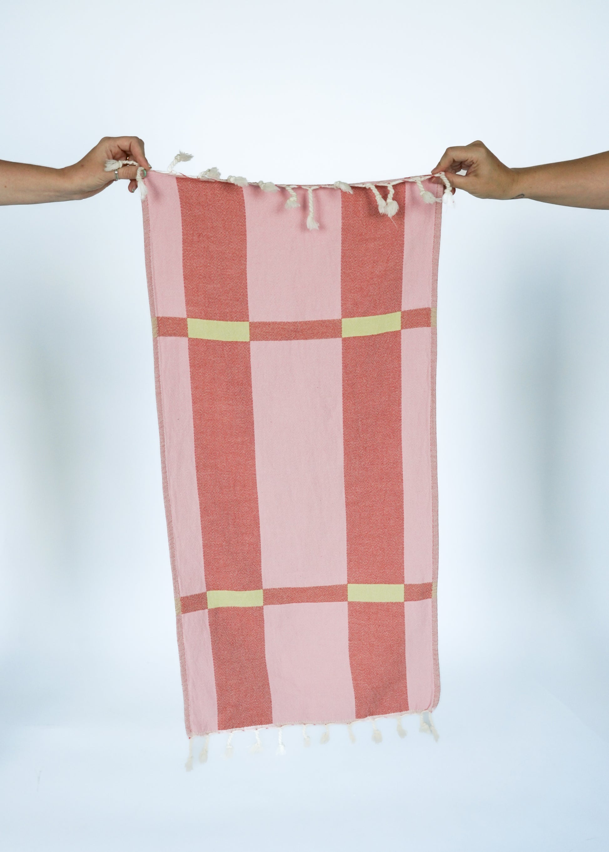 HAND TOWEL — Our hand towels could not be more versatile. Perfect for bringing a pop of color to your kitchen, spicing up your bathroom, or tying up a batch of apples for a picnic. They’re exactly like the larger Bath size, just smaller.