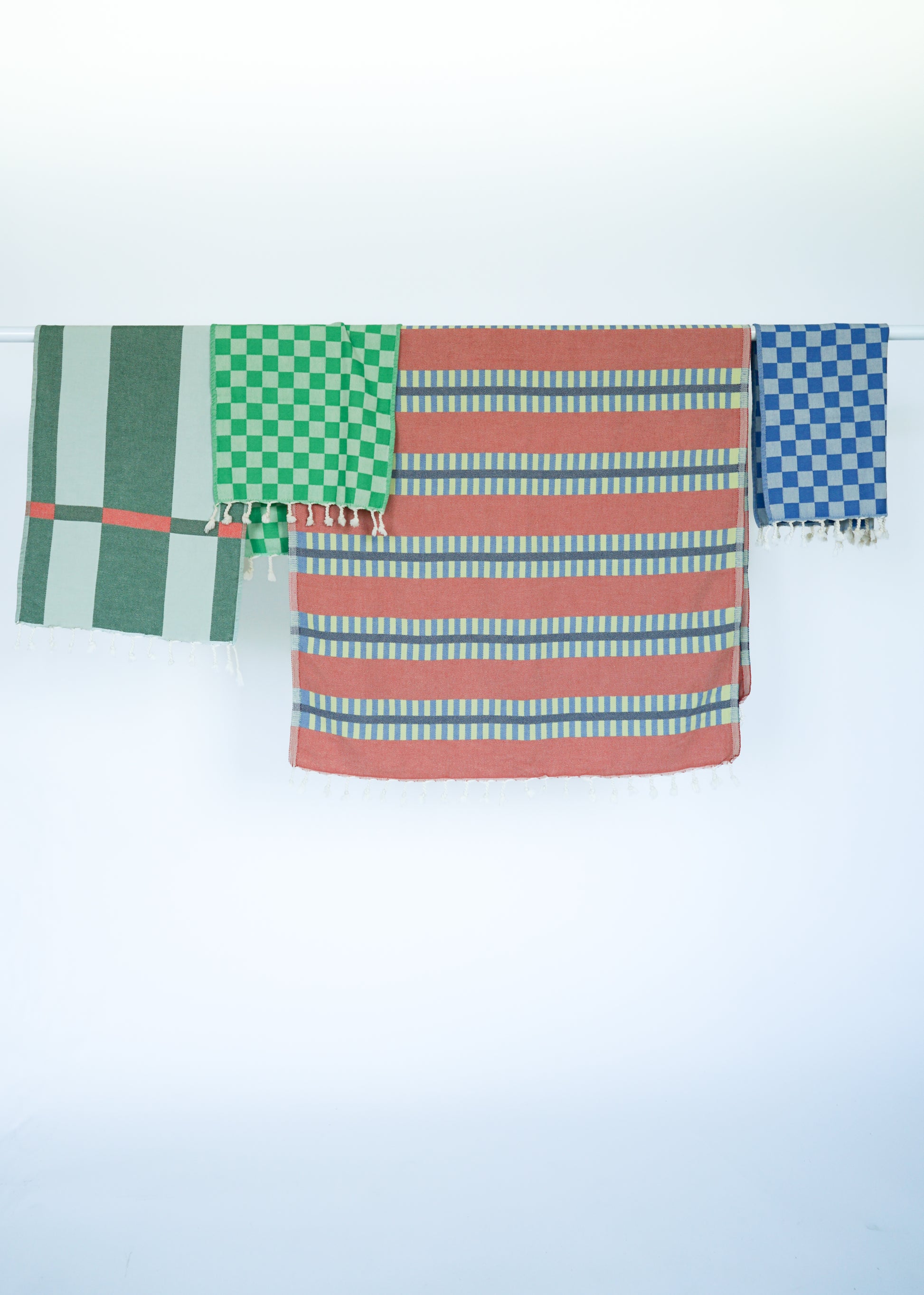 If you’ve never used a Turkish Towel, you’re in for a treat! They’re thin and lightweight and dry super fast. They also fold up nice and small and are easy to store — unlike traditional towels which have zero regard for taking up shelf space! Once you bring one into your life, you soon realize you need lots more. Good thing we keep designing new ones! Our latest additions and full of vibrancy and are fun enough to stand alone, or adaptable enough to mix and match with the others.