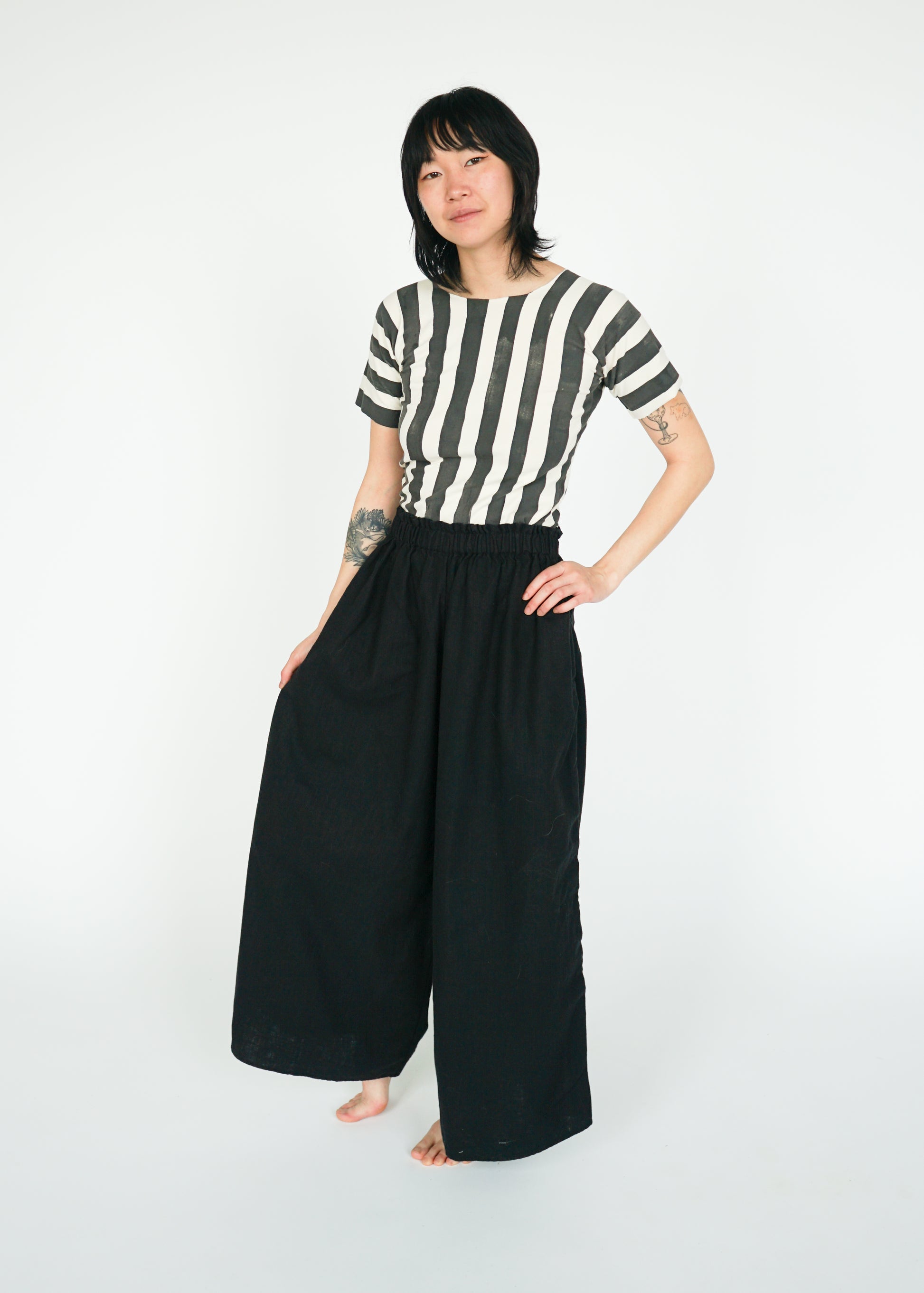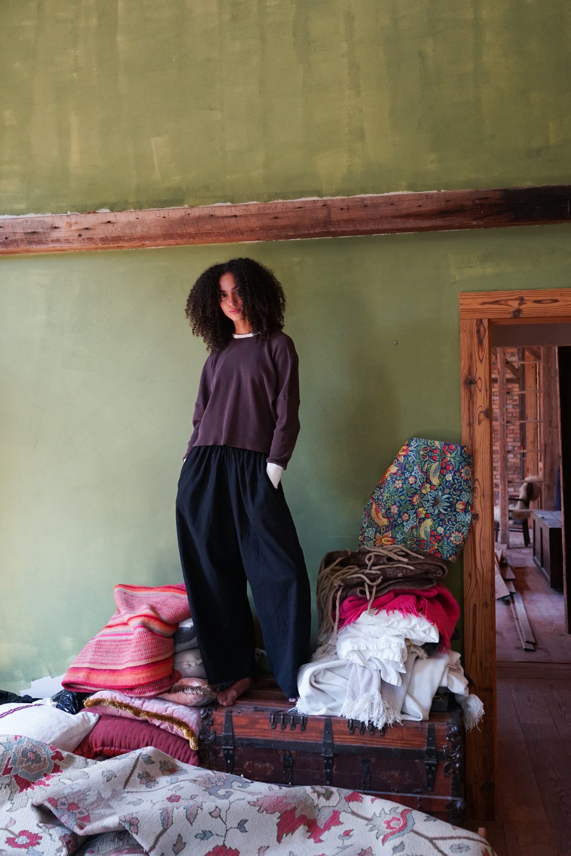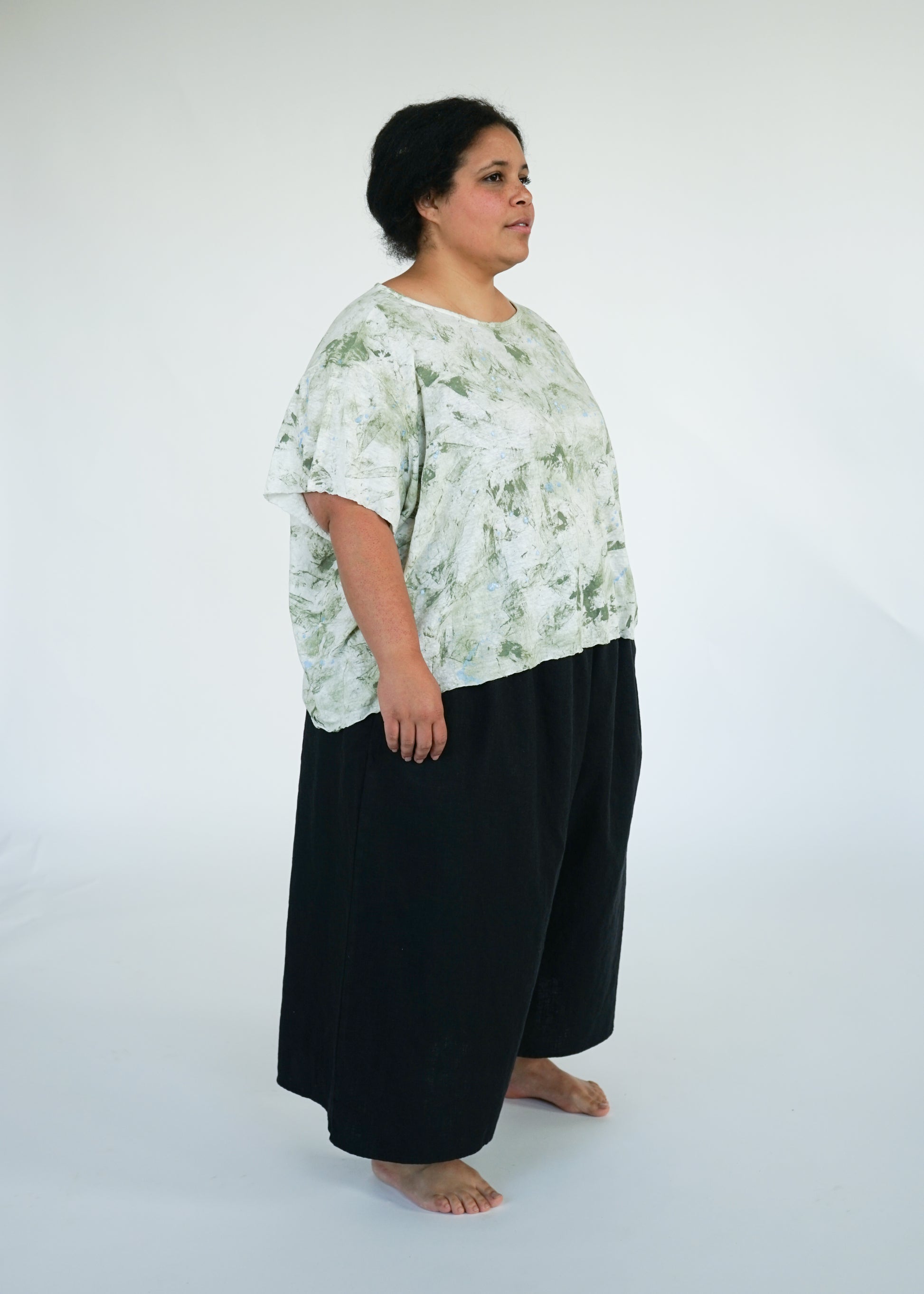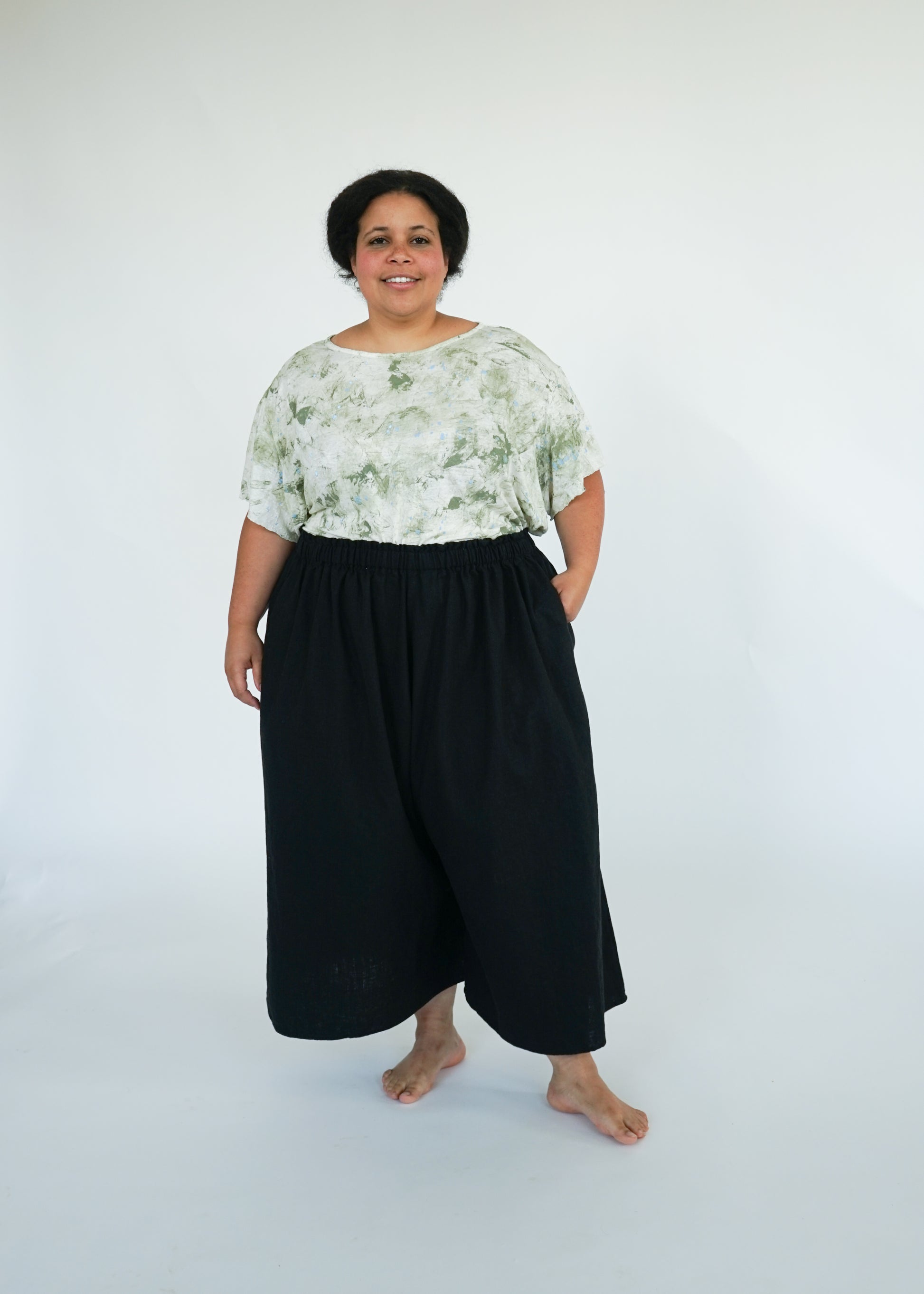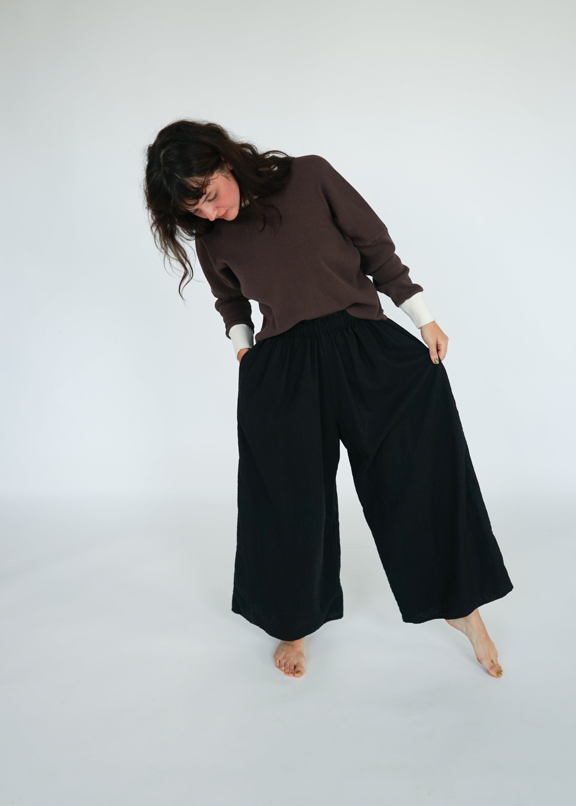 These pants are instant classics. For a reference on the fabric: The mid-weight linen is the same fabric as our Elk Swayers from our Earthship collection. It's ideal for wearing year round and the wide legs allow for layering over leggings in colder seasons.