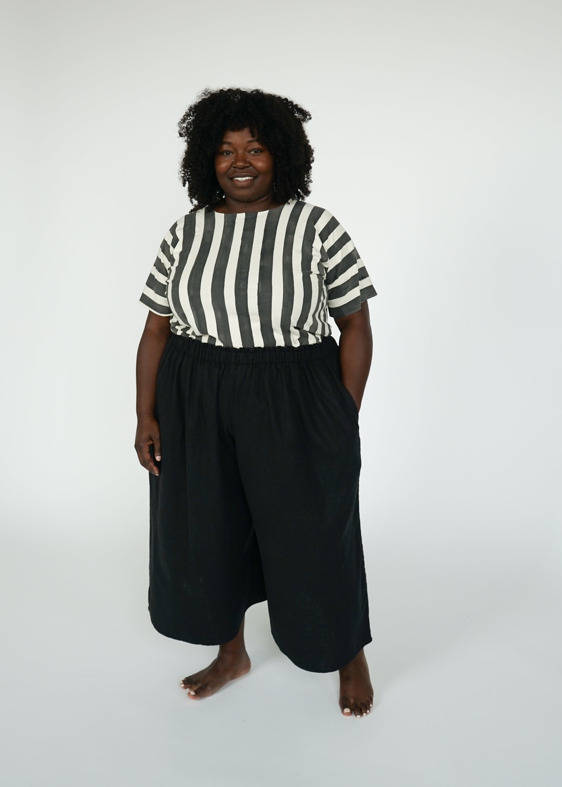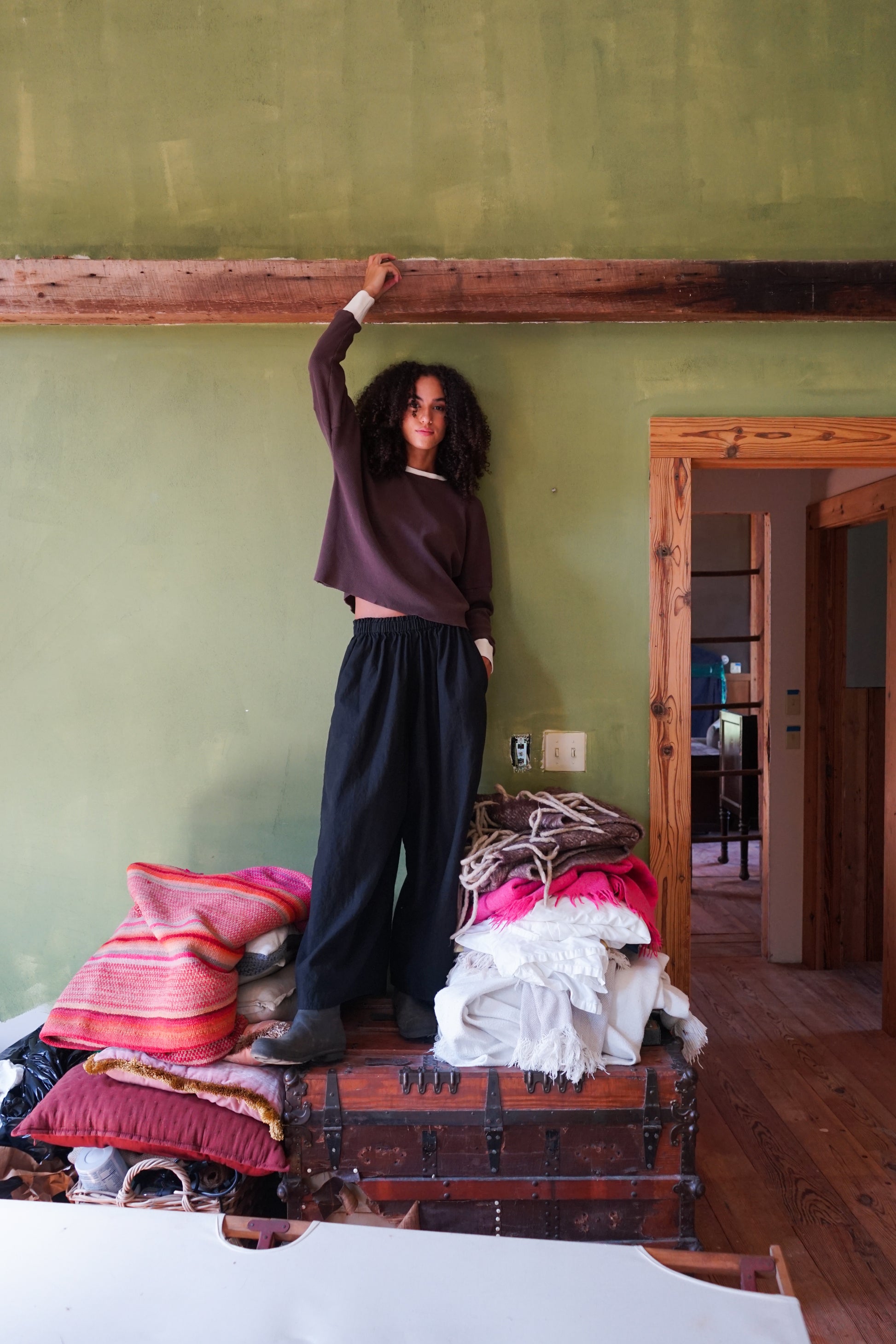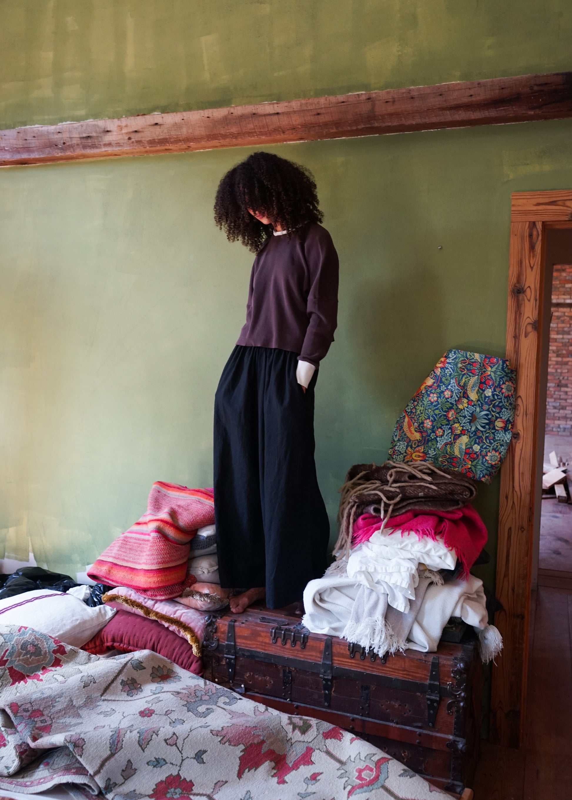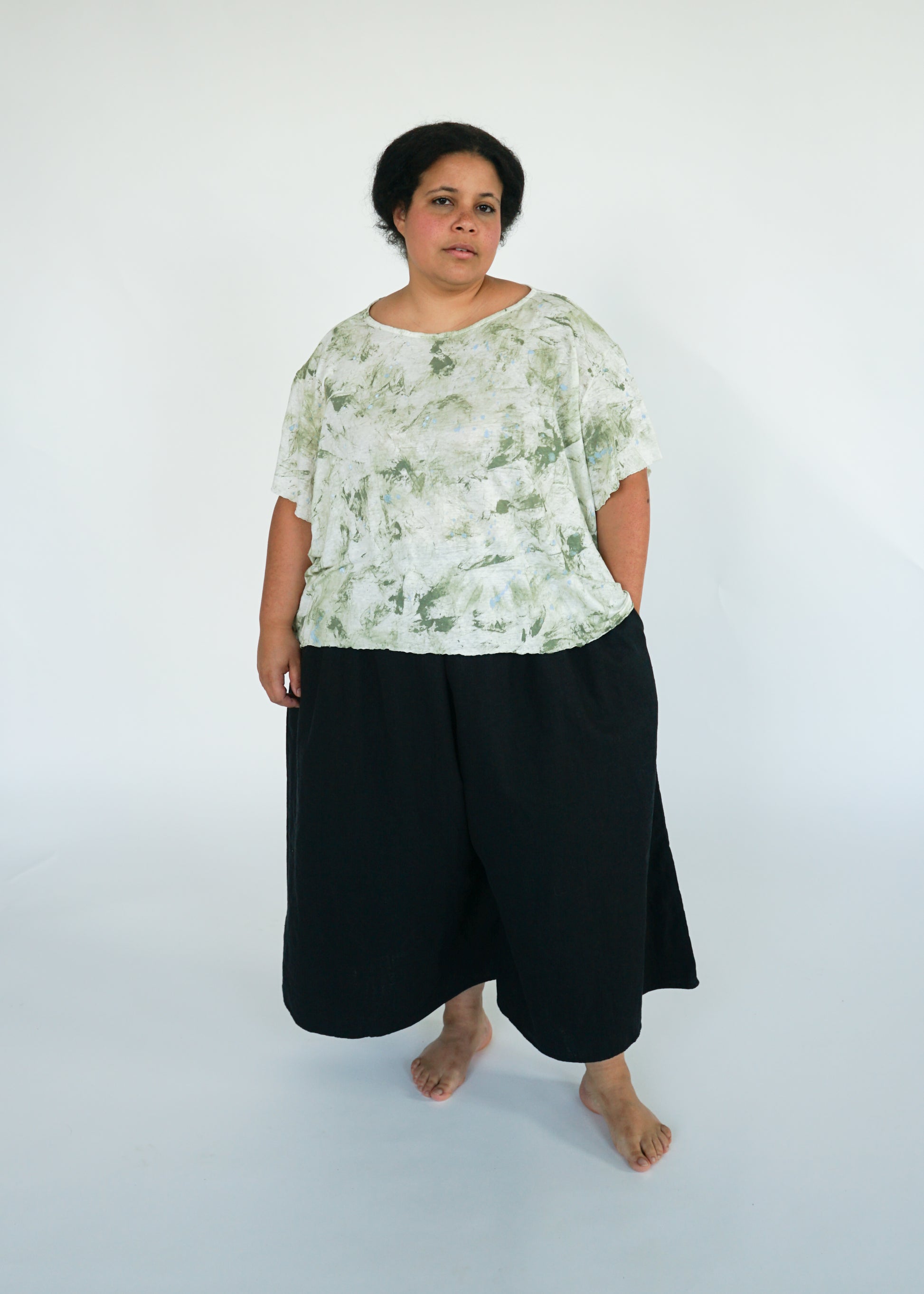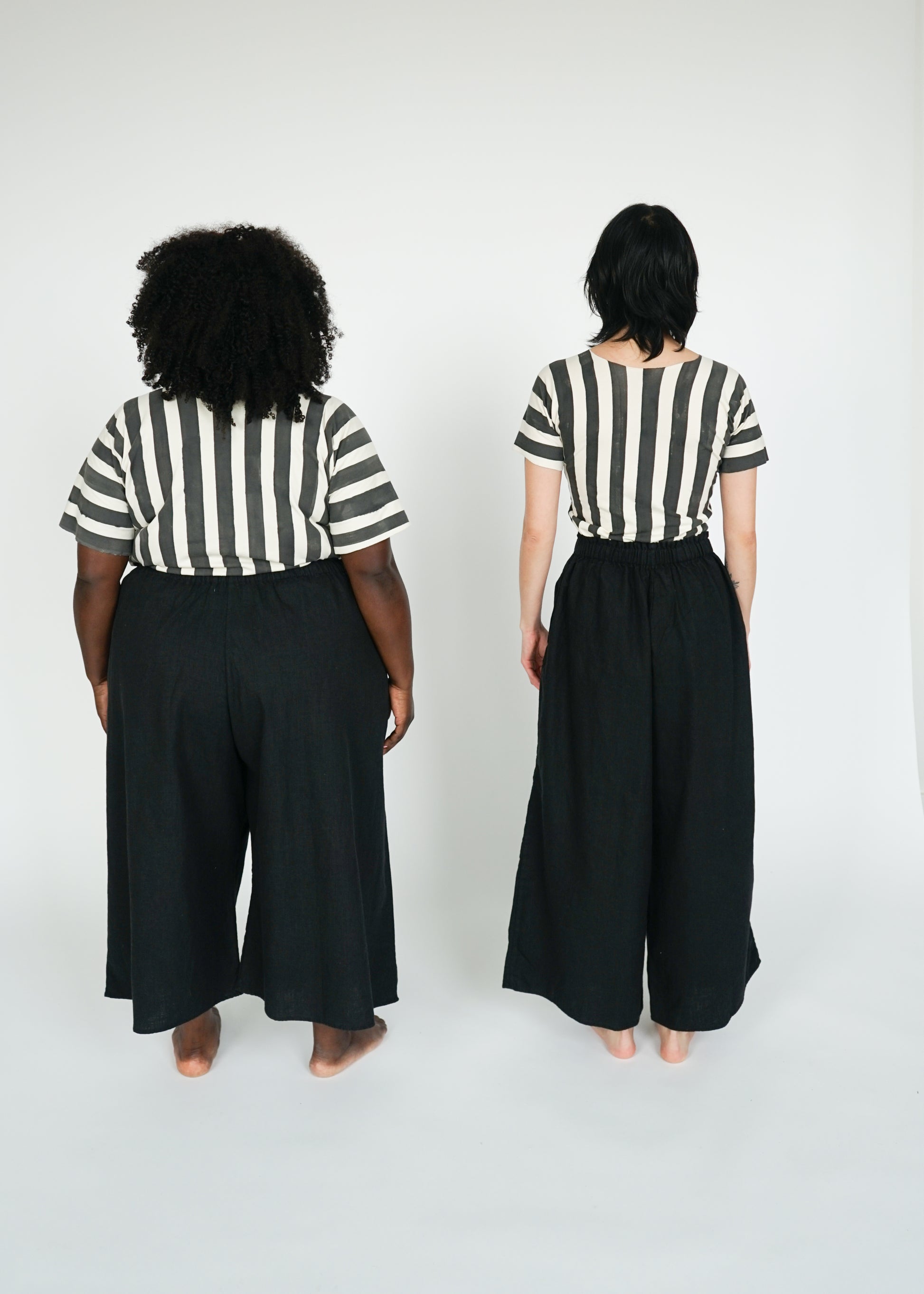 These pants are instant classics. For a reference on the fabric: The mid-weight linen is the same fabric as our Elk Swayers from our Earthship collection. It's ideal for wearing year round and the wide legs allow for layering over leggings in colder seasons.