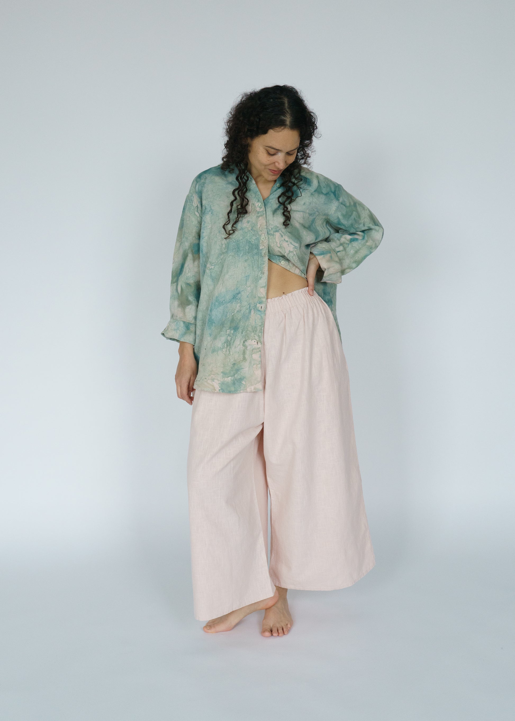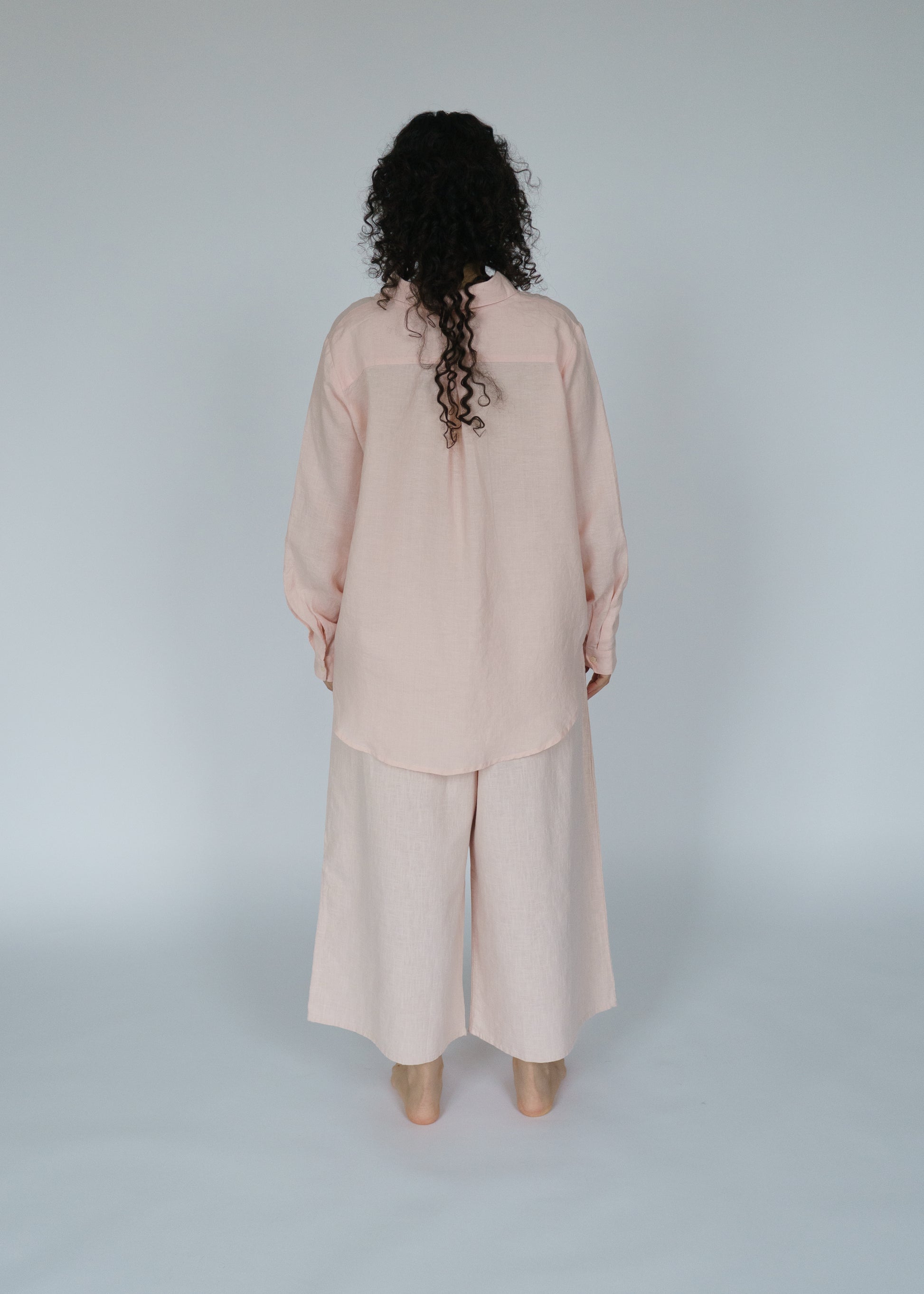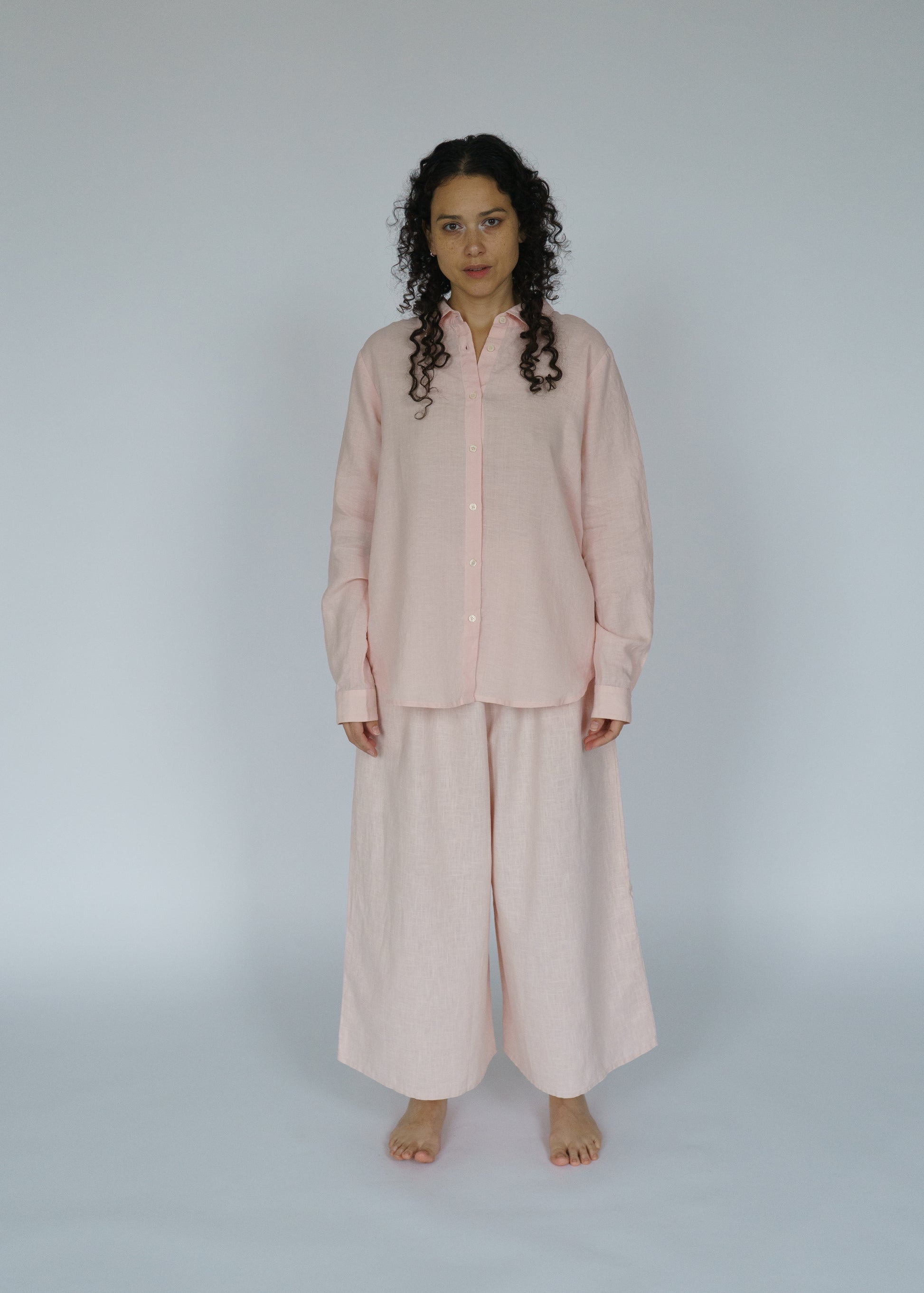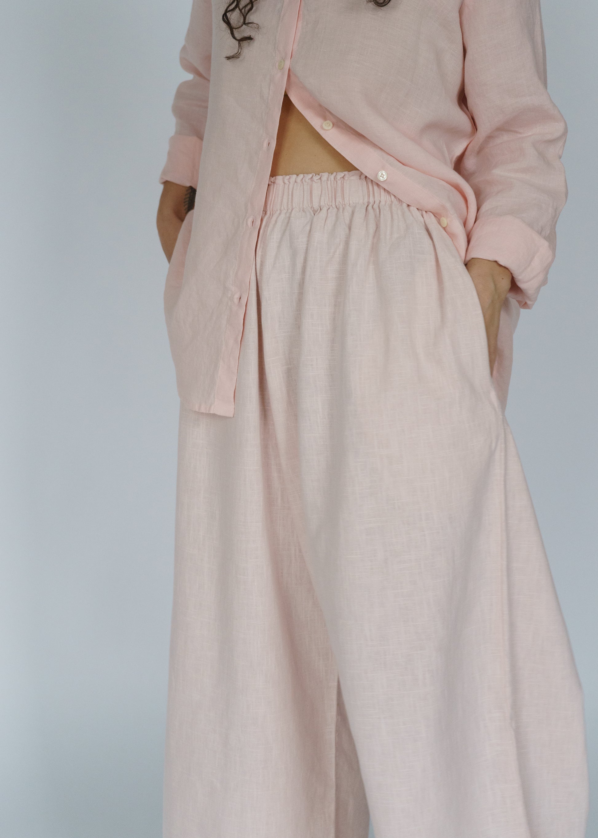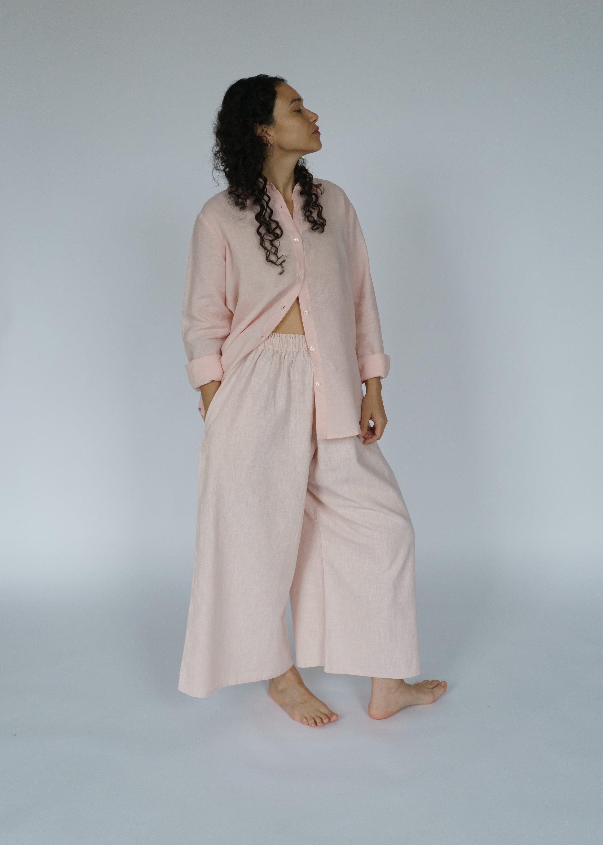 The softest showstopper we’ve ever made. The Swayers in Rose are like a whisper of pink icing — delicate, airy, and quietly confident. Just enough color to make your outfit sing, but subtle enough to play nice with everything in your closet. Cut in our signature swishy linen, they move like poetry. Pair them with the Big Shirt in Rose for a monochrome moment that feels equal parts menswear and pajama daydream.