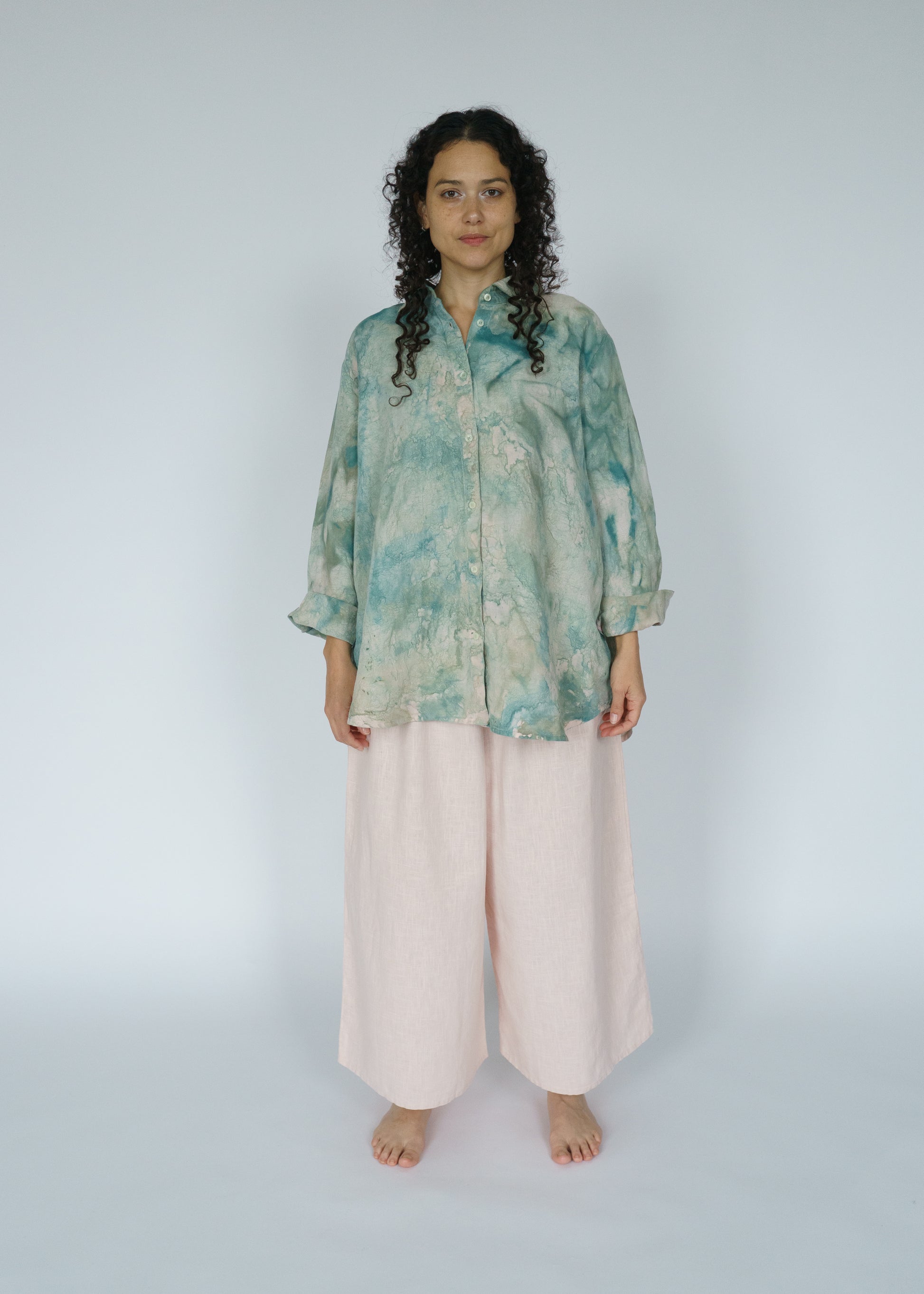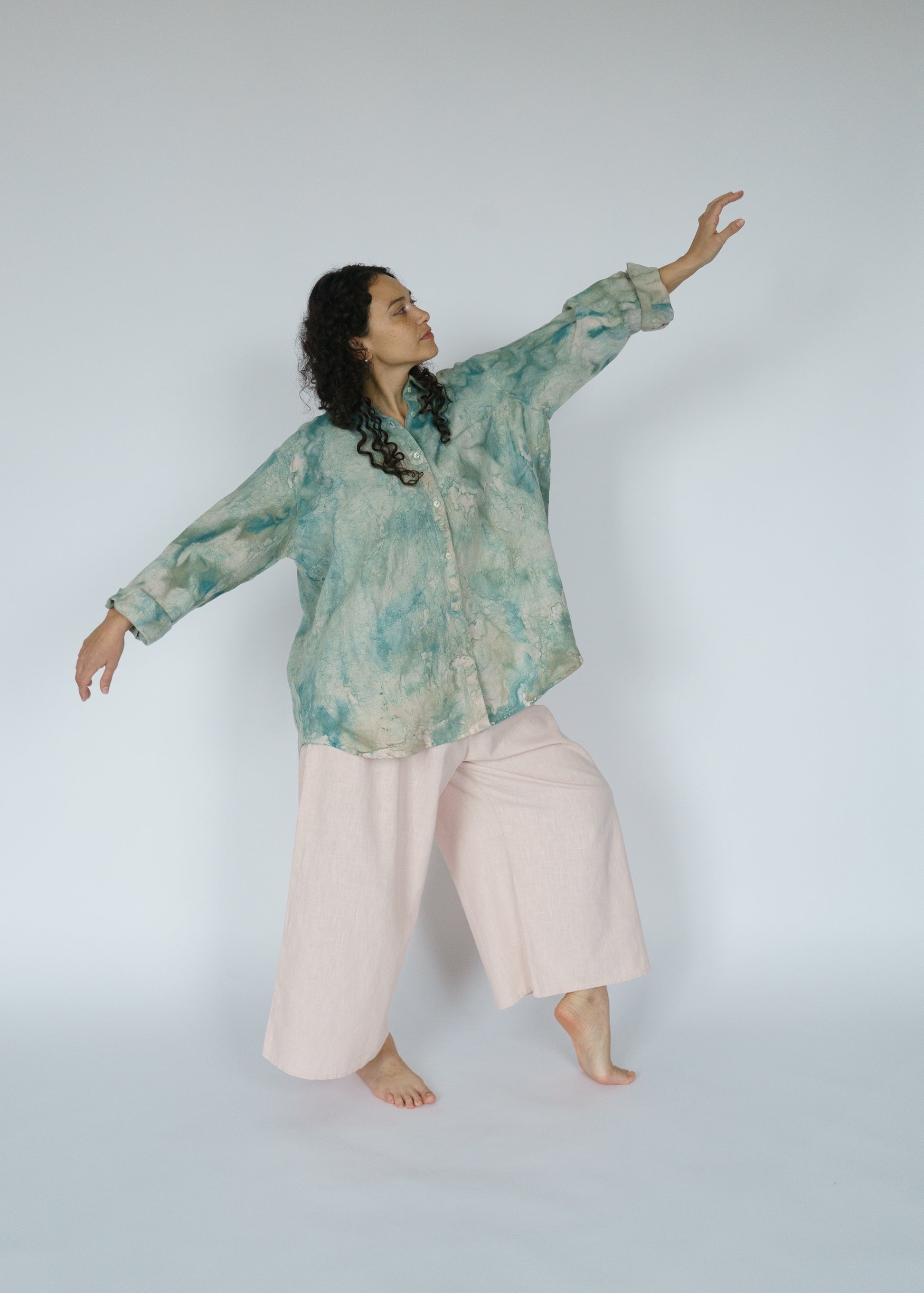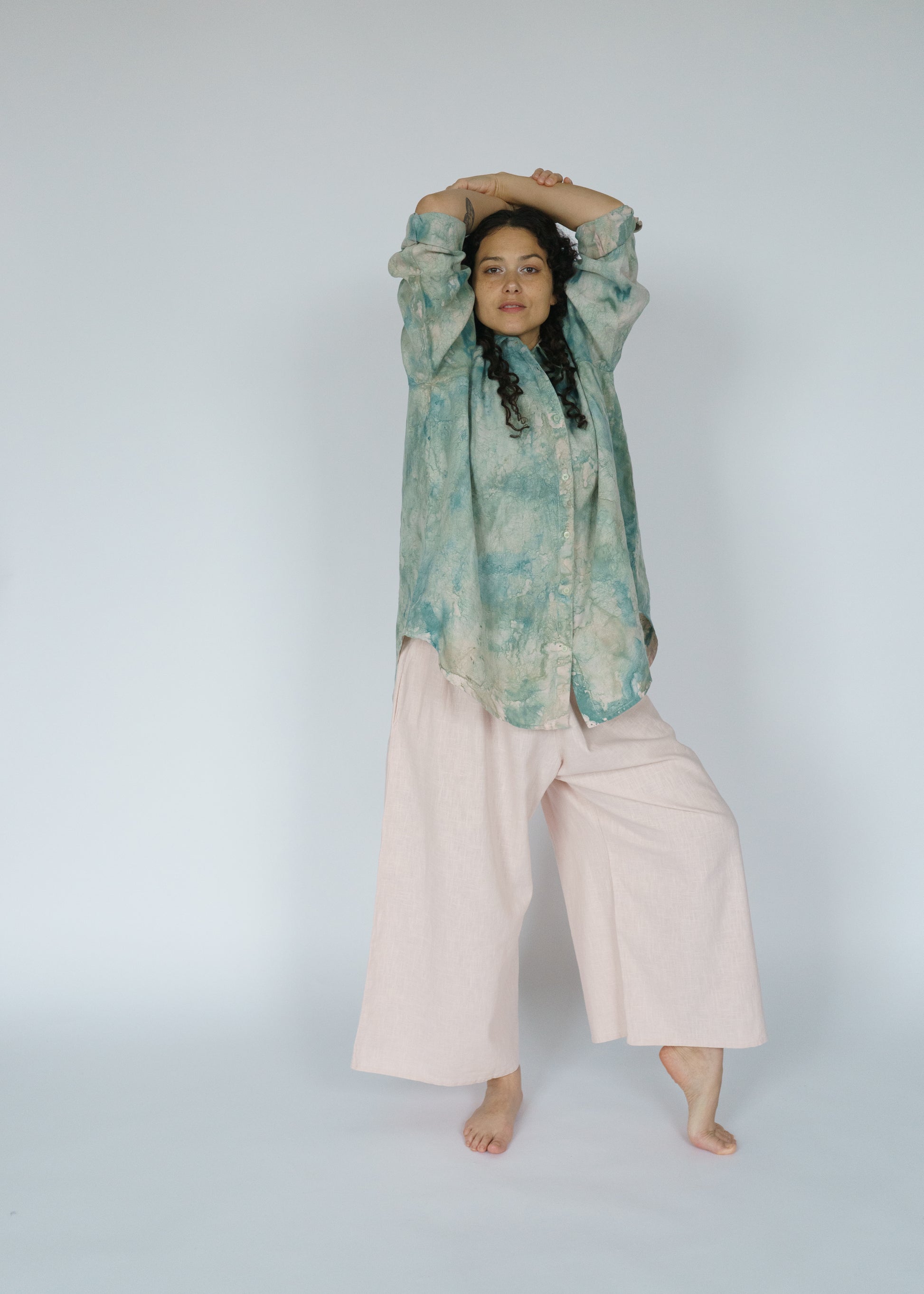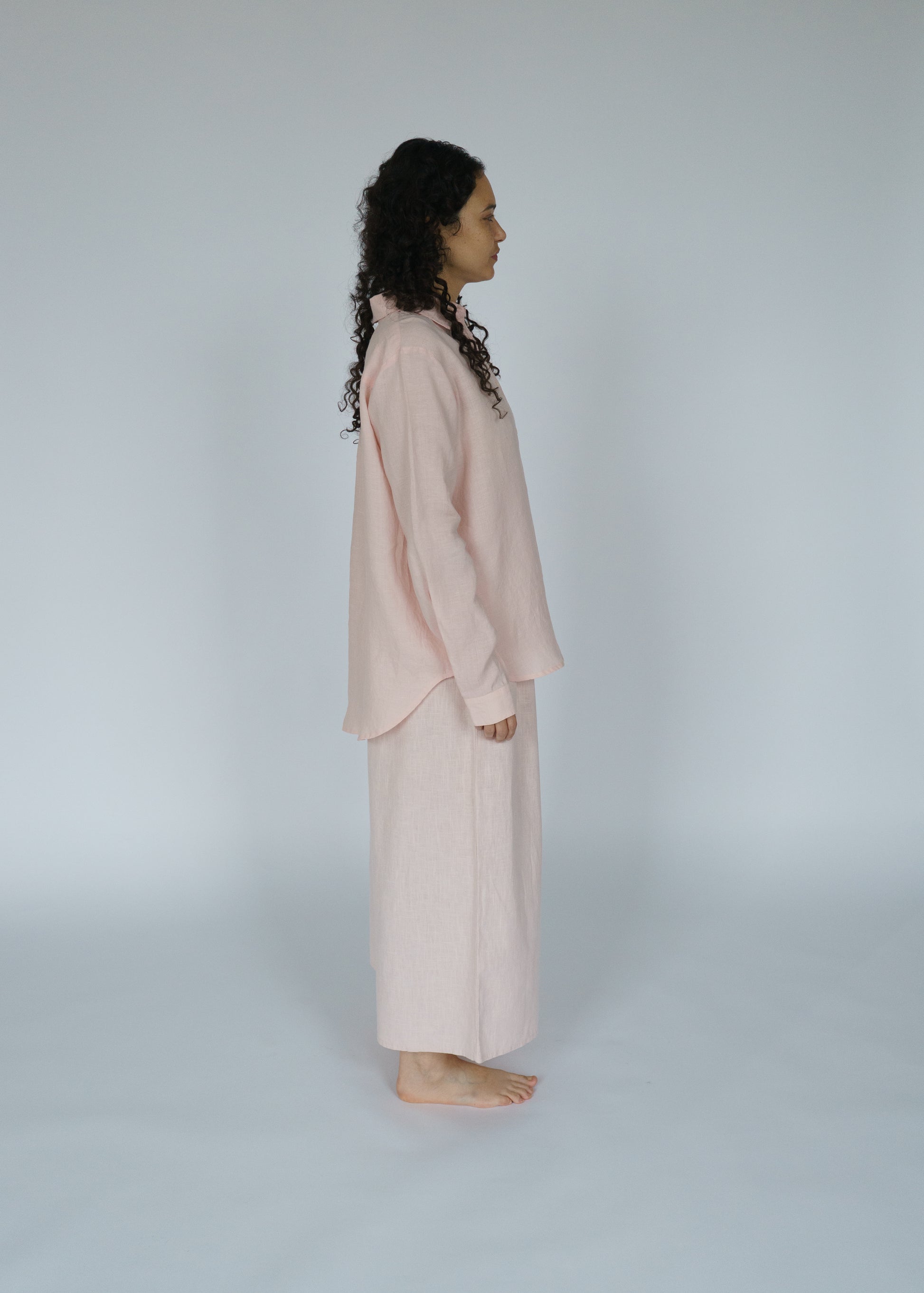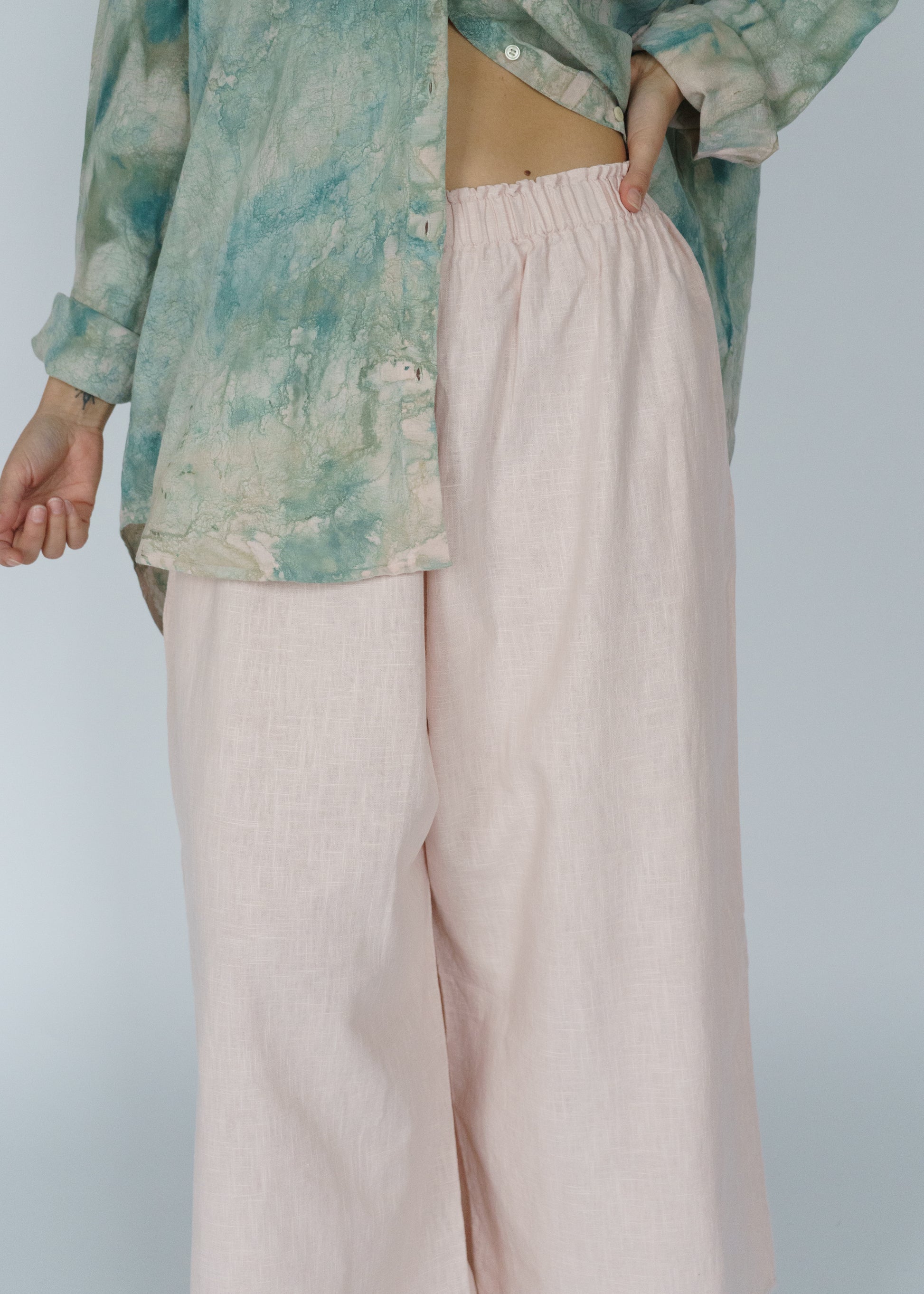 The softest showstopper we’ve ever made. The Swayers in Rose are like a whisper of pink icing — delicate, airy, and quietly confident. Just enough color to make your outfit sing, but subtle enough to play nice with everything in your closet. Cut in our signature swishy linen, they move like poetry. Pair them with the Big Shirt in Rose for a monochrome moment that feels equal parts menswear and pajama daydream.